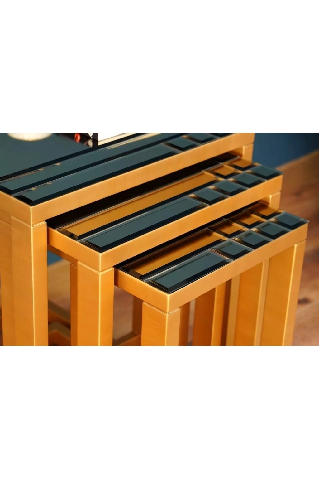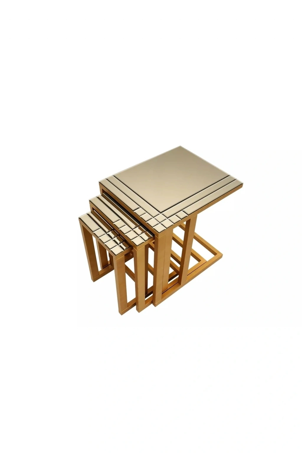 LINE Özenle ürettiğimiz aynalı mobilyaların mükemmel bir örneği olan Line zigon sehpası, zarif tasarımı ve işlevselliği ile dikkat çekiyor. ; Ürünün üçlü zigon versiyonu, altın ve bronz renklerin muhteşem uyumunu yansıtırken, modern çizgileri ile şık bir görünüm elde etmenizi sağlıyor. ; Line zigon sehpası, her ev veya ofis için mükemmel bir seçenektir ve kolay temizlenebilir camları sayesinde uzun ömürlü kullanım sağlar. ; Ürünün tasarımı, herhangi bir dekorasyon tarzına uyum sağlayacak şekilde özenle seçilmiştir.Hem estetik hem de işlevsellik açısından mükemmel bir seçim olan Line zigon sehpası, herhangi bir mekana şıklık ve kullanışlılık katmak için idealdir. ; TEKNİK ÖZELLİKLER Büyük Zigon En: 55cm Boy:45cm Yükseklik: 59cm Orta Zigon En: 52cm Boy:38cm Yükseklik: 55cm Küçük Zigon En: 50cm Boy:30cm Yükseklik: 51cm Pirinç Eskitme ( Osmanlı Boya Sanatı) Masif Ağaç / 4mm Ayna Ürünümüzde tasarım kenar 4mm Kenar Bizoteli ayna kullanılmıştır.;