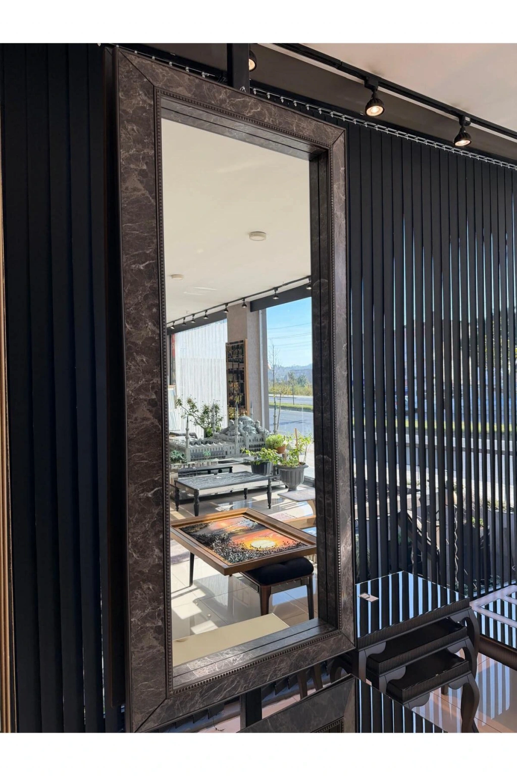 - Türkiye'de üretilen, özgün tasarımıyla dikkat çeken mermer görünümlü duvar aynası.; - Dikdörtgen şekliyle modern ve şık bir görünüm sunar, mekanınıza estetik bir dokunuş katar.; - Dayanıklı ahşap materyali ile uzun ömürlü kullanım vaat eder ve dekorasyonunuza doğal bir hava katar.; - Duvar aynası olarak tasarlanmıştır; oturma odanızdan yatak odanıza kadar her alanda kolayca asılabilir ve şıklığınızı tamamlar.; Mermer dokunun şıklığı, detayların zarafeti.; Evinize modern bir ihtişam katın.;