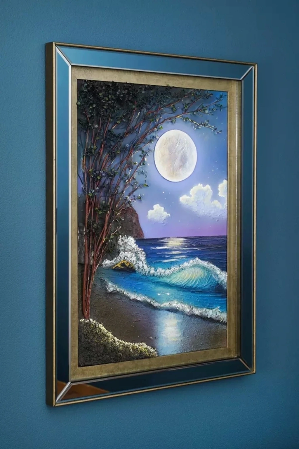 MOON Moon tablo sizi ayın sıcak ışığı ve denizdeki büyüleyici yakamozunun huzurlu atmosferine götürüyor. ; 3 boyutlu tasarımı sayesinde, tabloya baktığınızda sanki gerçekten oradaymışsınız hissi uyandırıyor. ; El işçiliği ile sanatsal olarak üretilen bu tablo, özenle seçilmiş malzemelerle yapıldı. ; Ayın ışığı deniz yüzeyindeki dalgaları aydınlatırken, yakamozun ışıltısı denizin yüzeyinde dans ediyor. ; Moon tablo, evinizde ya da ofisinizde, sizi kendine hayran bırakan bir sanat eseri olarak sergilenebilir. ; TEKNİK ÖZELLİKLER MOON En: 81cm Boy: 112cm Kasa Kalınlığı: 5cm;