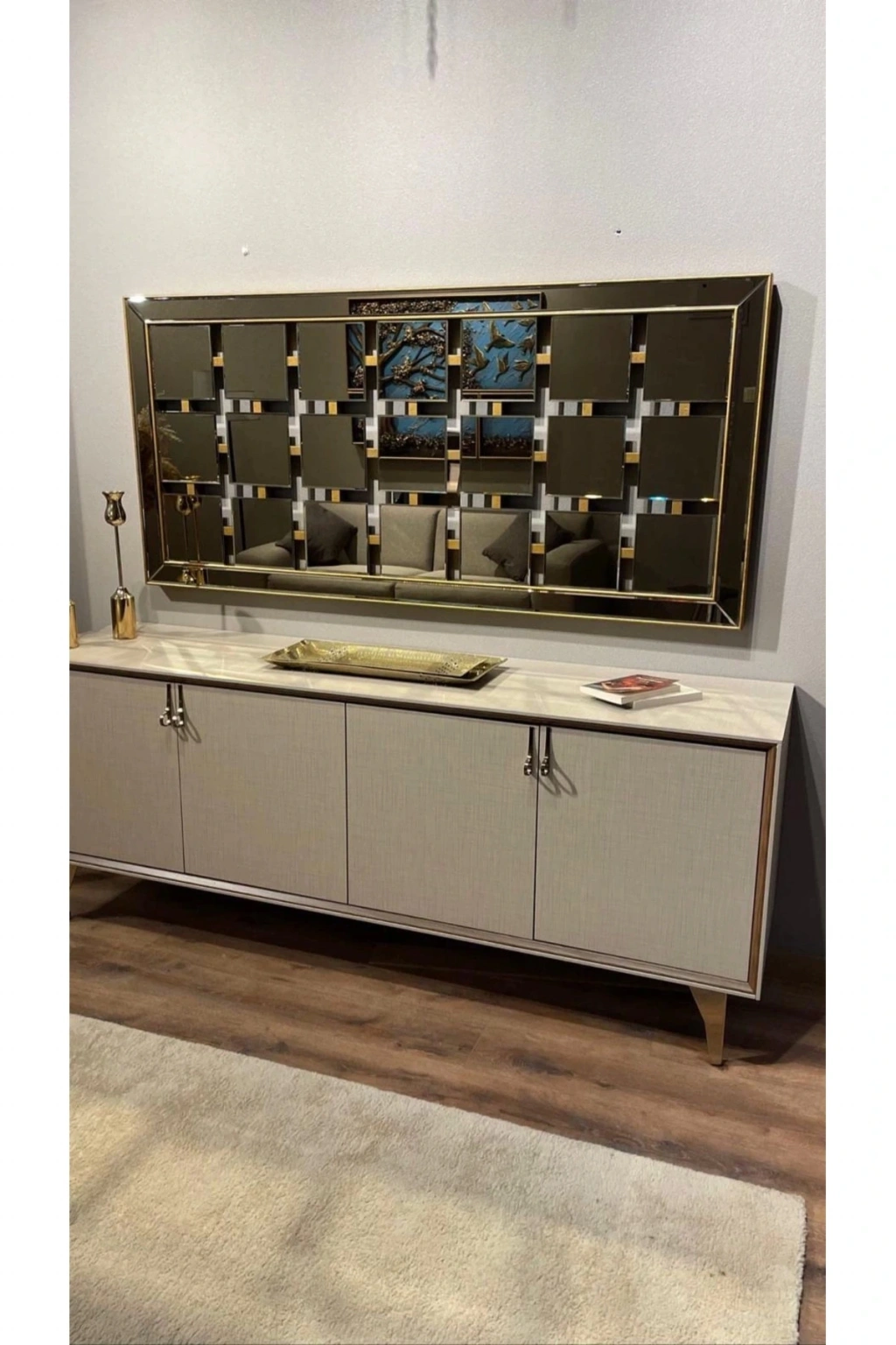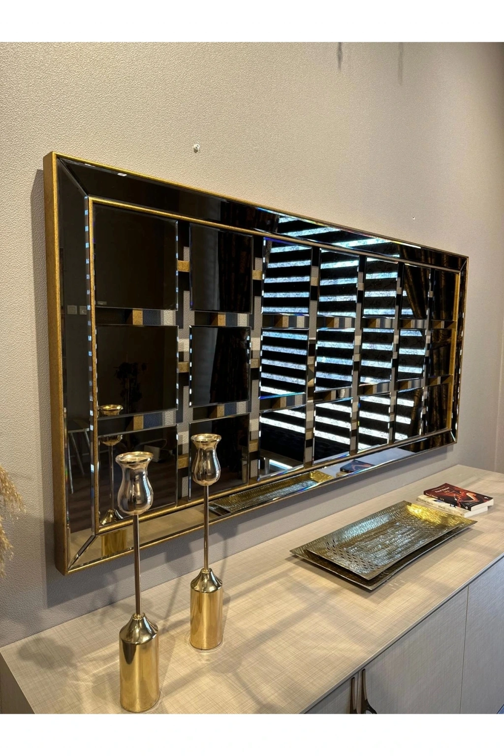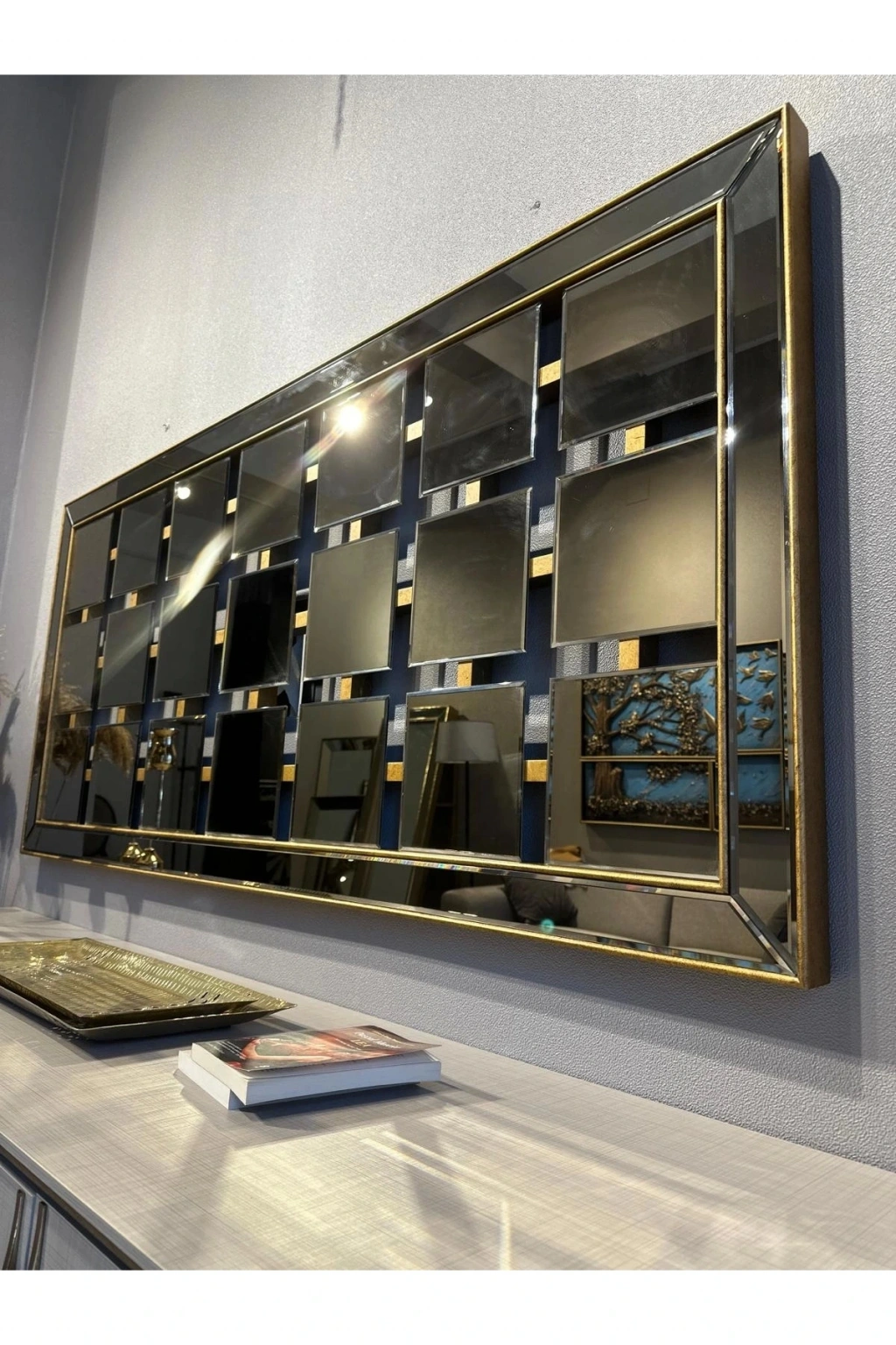 Parçalı Detay Masif Ağaç Çerçeve Dikdörtgen Dekoratif Duvar Aynası 80x180cm