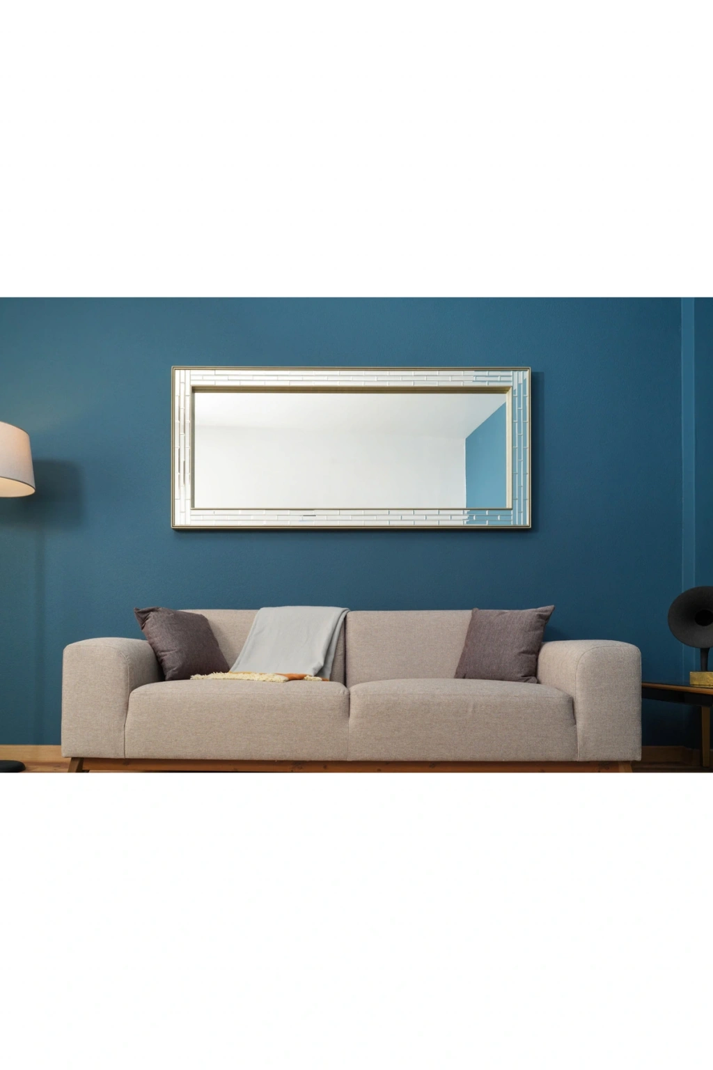 Pix Silver Masif Ağaç Çerçeve Dikdörtgen Dekoratif Duvar Aynası 80x180cm
