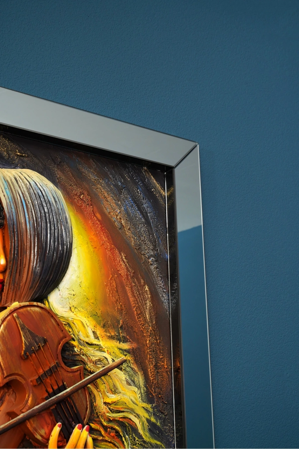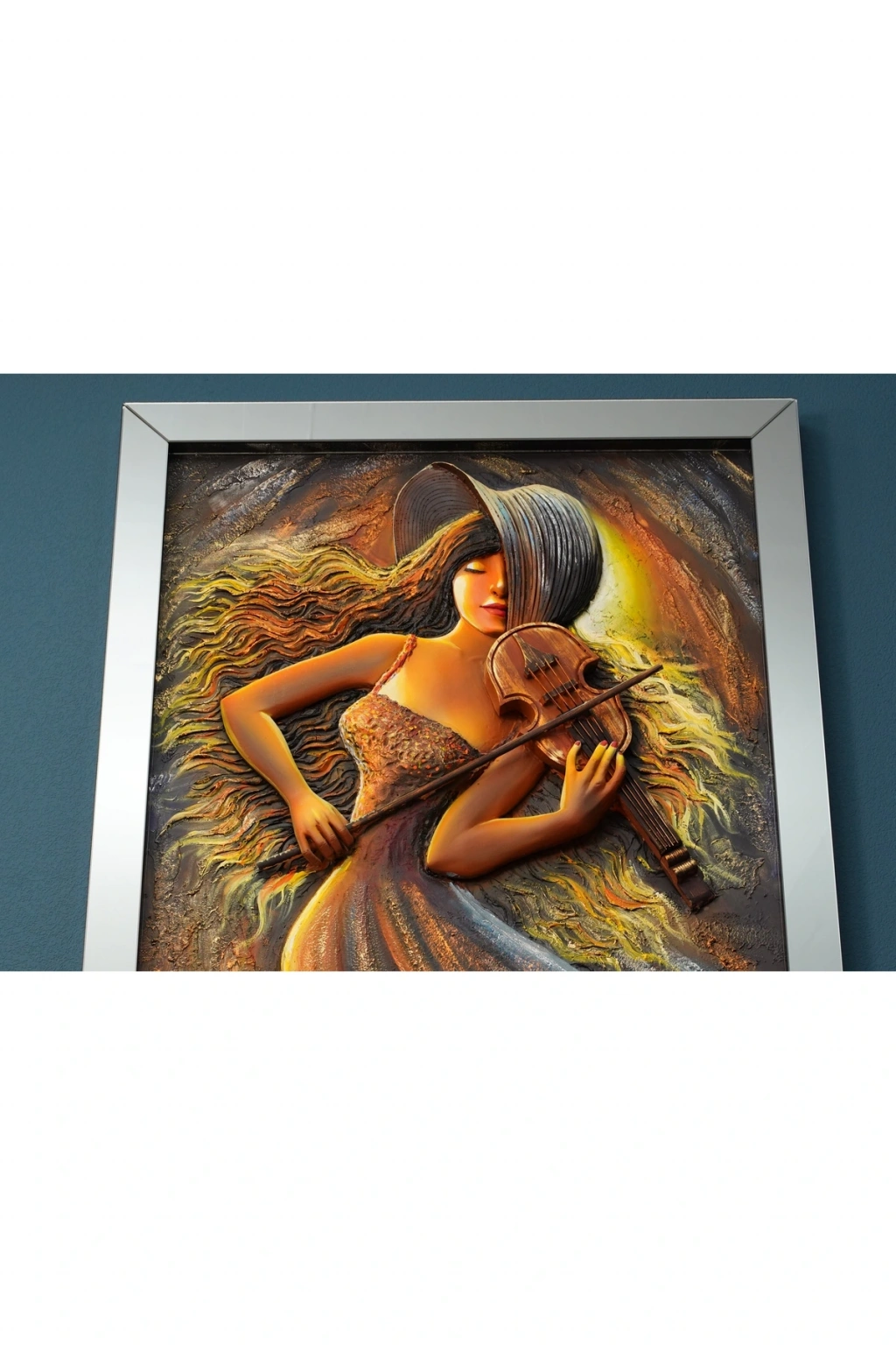 VIOLIN Violine tablosu adlı sanatsal eserimizde, 3 boyutlu bir şekilde tasvir edilmiş, keman çalan uzun saçlı bir kadın figürü yer almaktadır. ; Eserimiz, özel el işçiliğiyle üretilerek sanatsal değeri yüksek bir tablo olarak karşınıza çıkıyor. ; İnce işçilikle detaylandırılmış figürün yanı sıra, çerçeve olarak kullanılan eşsiz aynadan da ayrı bir estetik kazandıran violin tablosu, evinize ve ofisinize farklı bir hava katacak. ; Eğer siz de sanatsal değeri yüksek bir tablo arayışındaysanız, violin tablosunu inceleyebilir ve koleksiyonunuzda yer vermek için satın alabilirsiniz. ; TEKNİK ÖZELLİKLER VIOLIN En: 100cm Boy: 130cm Kasa Kalınlığı: 5cm;